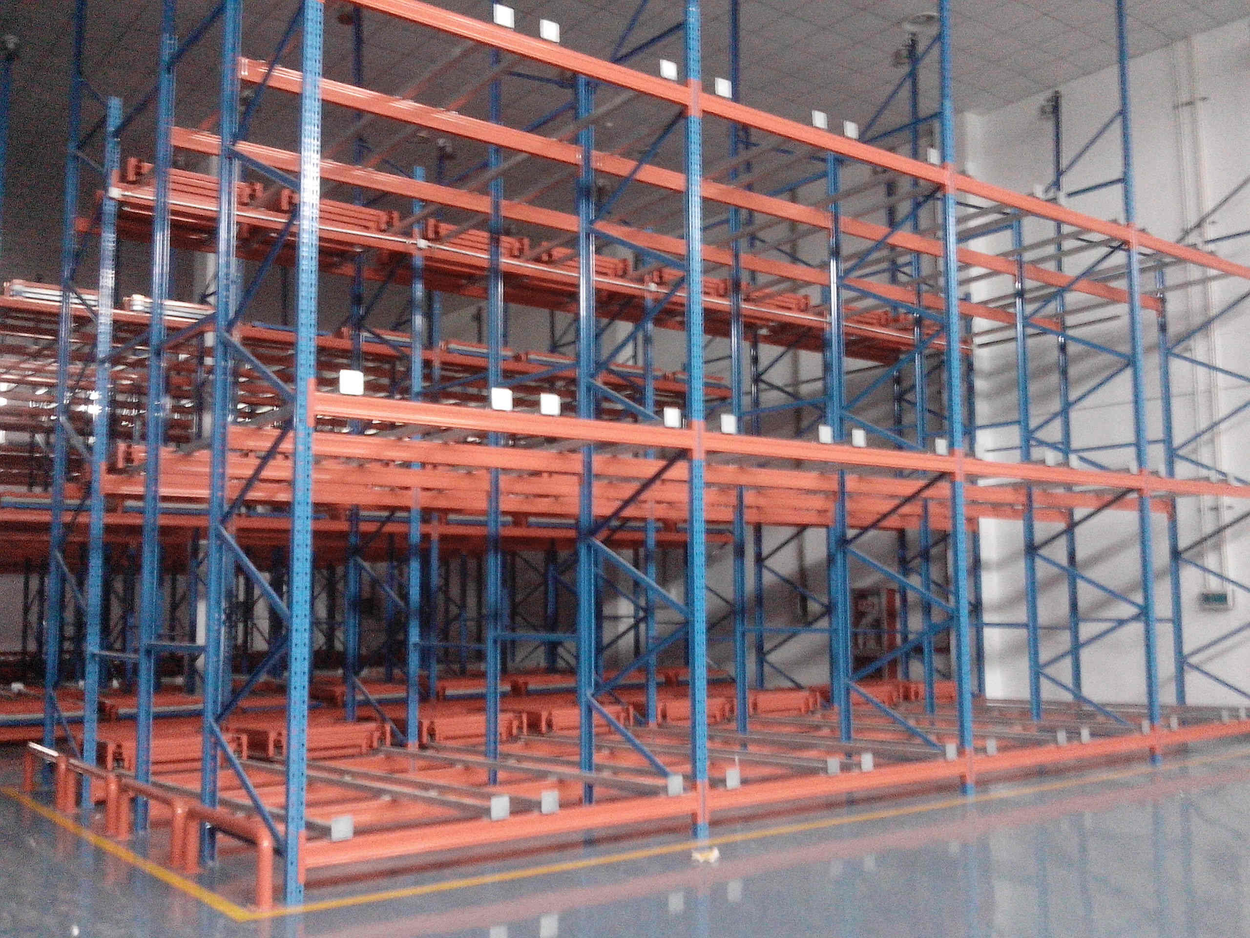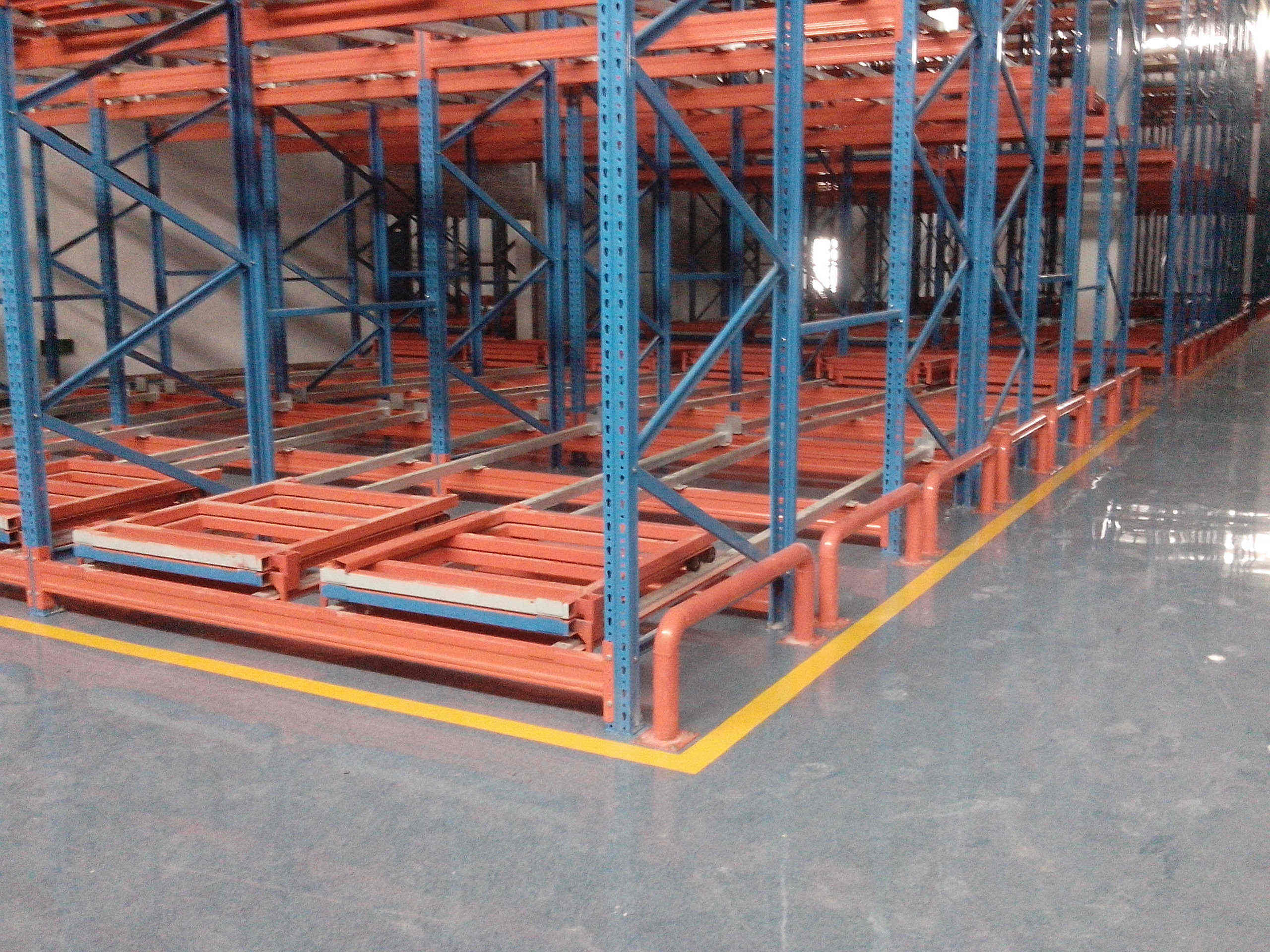 相对于普通托盘货架而言,重力式货架在货架每层的通道上都安装有一定坡度的、带有轨道的导轨,入库的货物在重力的作用下,由入库端流向出库端,这样大大提高了仓库面积利用率。值得注意的是,同一层上的货物,应该为同类货物或同批次入库和出库的货物,且货架导轨不宜过长,否则不可利用空间会较大,造成空间浪费,再就是导轨过长,下滑的冲力较大,容易引起托盘货物的倾翻。