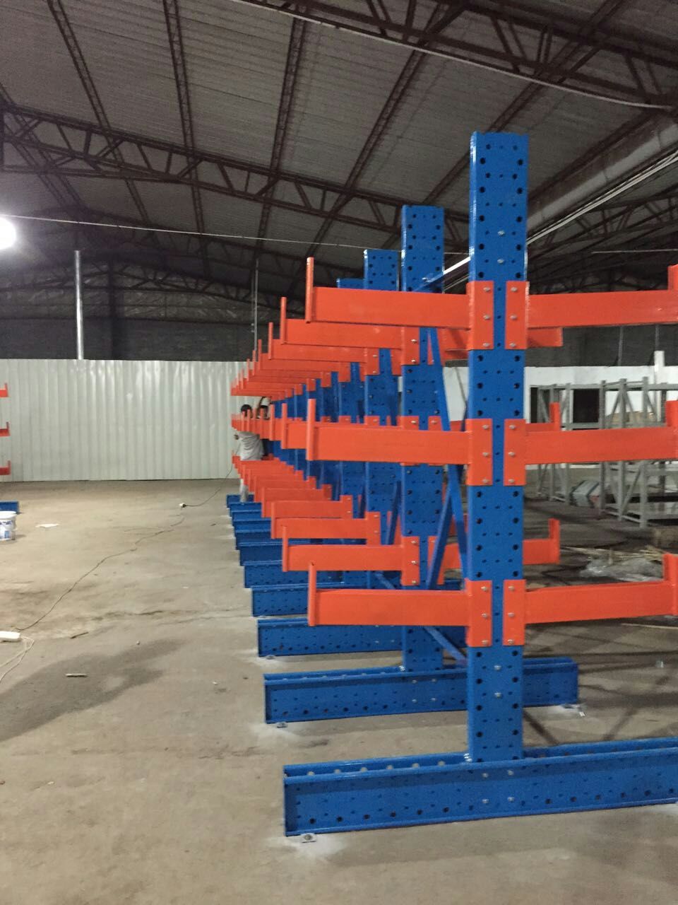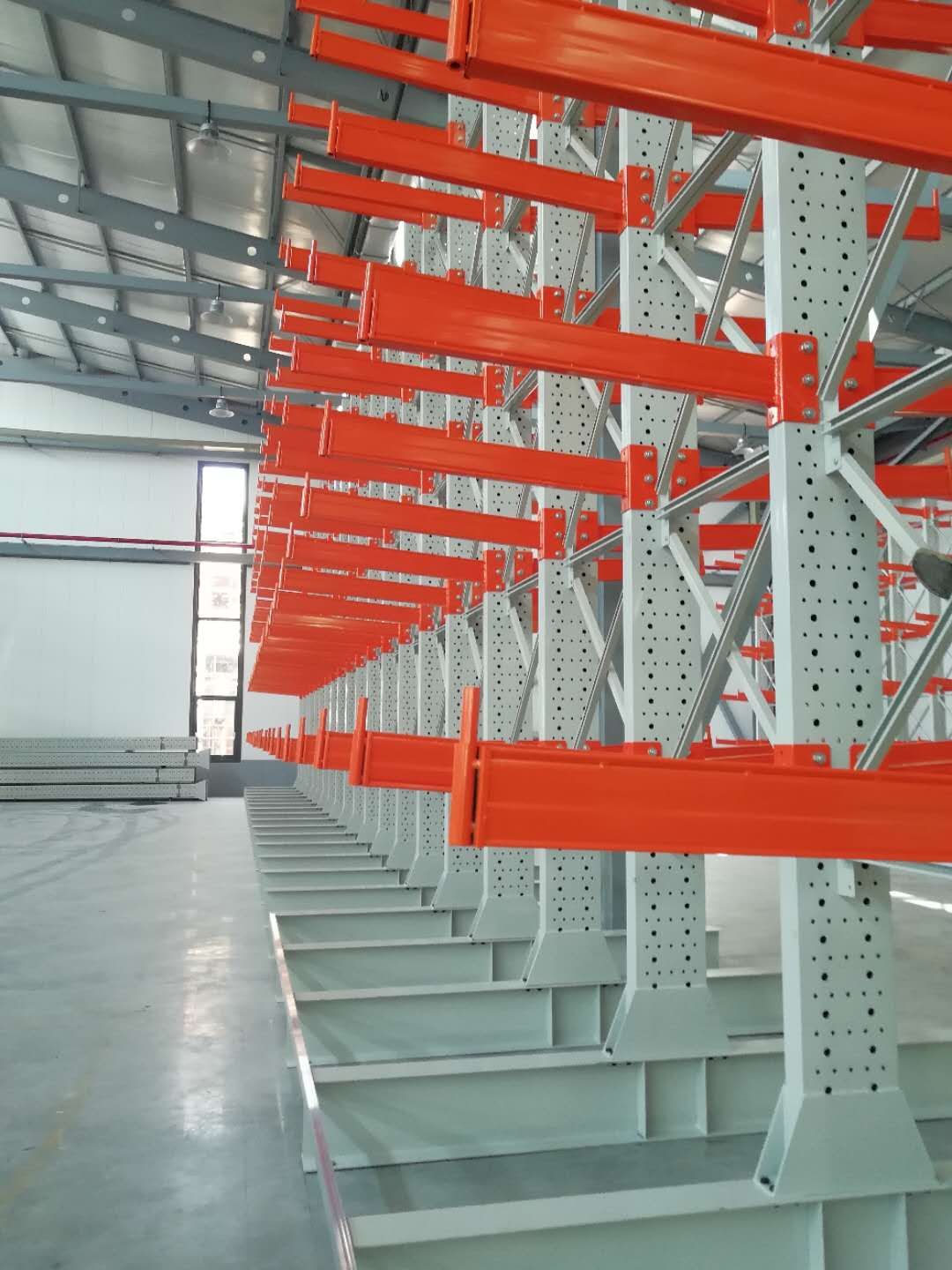 (2)悬臂式货架是单面或双面的,可以是固定的,也可以是移动的,具有结构稳定、载重能力好、空间利用率高等特点。