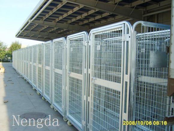 04、折叠式笼车根据目前国际市场的发展趋势可分为第1代、第2代、第3代、第4代笼车。目前已经发展到最先进的第4代笼车,外表非常美观,结构较牢固,笼车的四面网墙晃动较小,采用全部框架加网格式焊接处理。笼车在折叠后,主体结构呈L型状,底座呈U型框架, 笼车仍然是4个脚轮定位和固定。笼车不会倾倒,大大提高笼车的稳定性和安全性,特别是在车载运输途中,此优点是其它结构的笼车无法比拟的。设计合理,工艺精湛,制造难度大,容易操作使用,市场反映较好。使用寿命达3-4年。