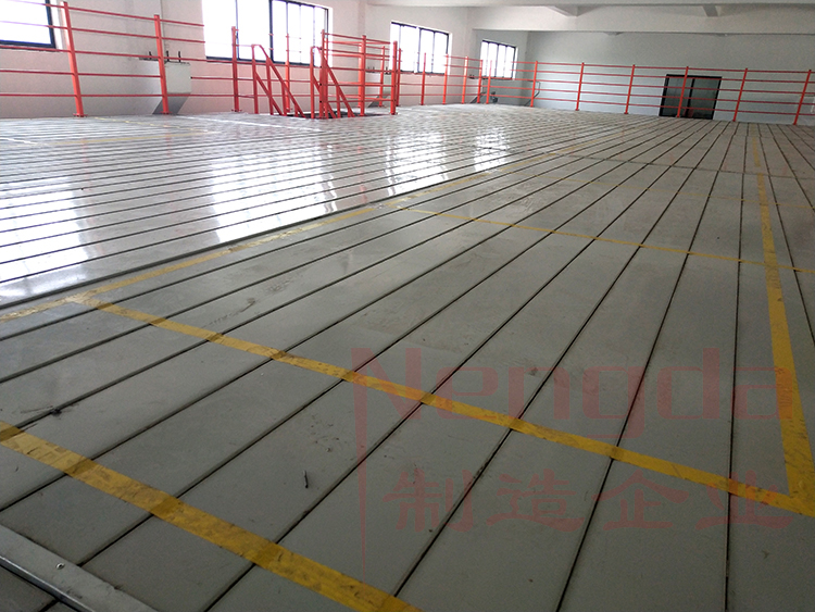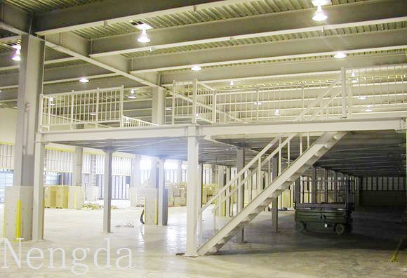 01、阁楼平台主要由立柱、主梁、次梁、楼面板、楼梯及护栏组成。平台整体组装,无须现场焊接,通常设计2-3层。通常承载能力在300Kg-1500Kg/平方米,立柱选择承载能力强、用钢量少的方管或圆管(选H型钢的成本较高);主次梁可以根据承载需要选择目前在钢结构工程中最经济合理的H型钢;楼板选用专用轧制楼板,采用扣板式结构,与主次梁钢性固定,整个平台结构整体性强,可以根据实际需要选择不同的楼板以满足消防或防灰尘、防小件坠落要求。