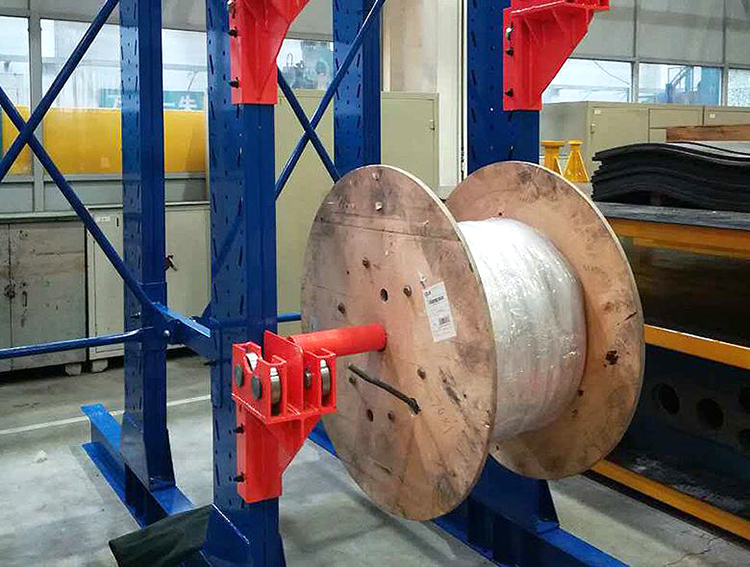 电缆货架由立柱、底座、拉杆、轴杆、轴座托架等部件组成,采用全组装结构,便于电缆货架的运输、搬运,这种结构稳定性强、外形美观、承载大,每个轴座载重可以达到5000Kg,且安装、拆卸方便灵活,可以根据电缆盘的大小定制电缆货架尺寸。