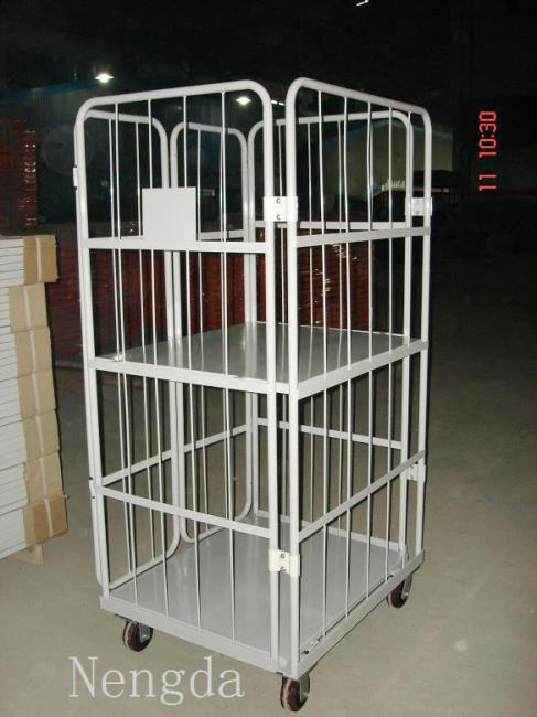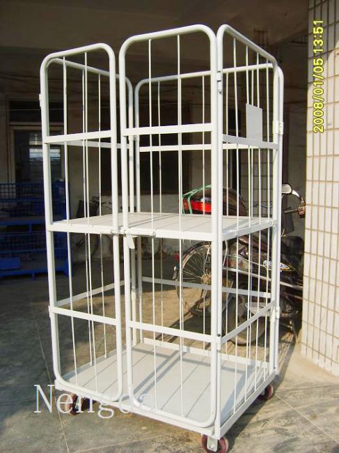周转笼车又称物流台车。用于仓储活动中配送货物使用。台车可以折叠使用,适用于生产线上零部件分类存放。